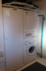 Im Vorraum befindet sich der Waschturm und der Tiefkühler (zur Mitbenützung)