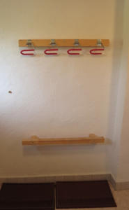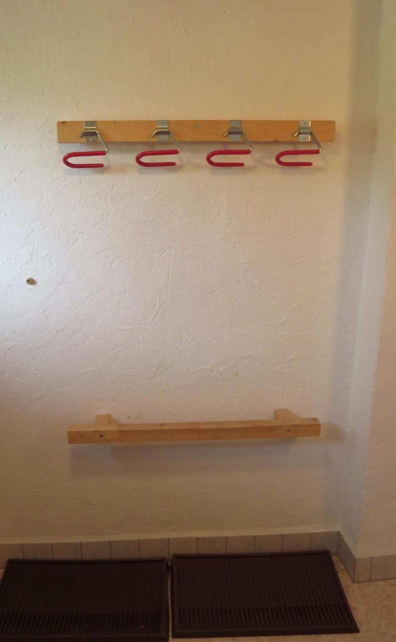 und es ist genügend Platz vorhanden für die Schuhe und die Skiausrüstung.